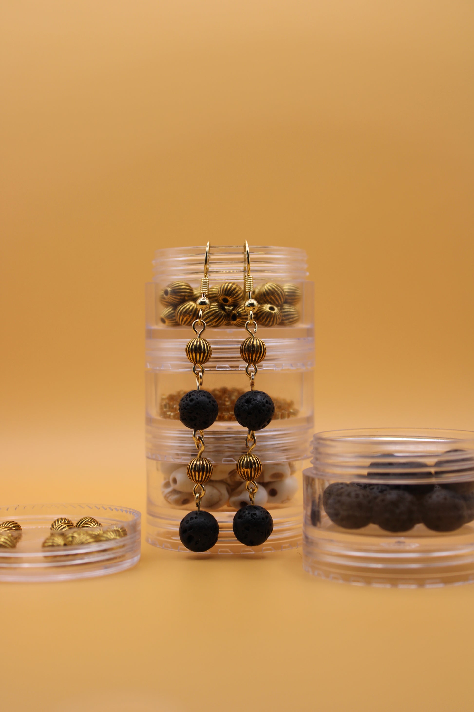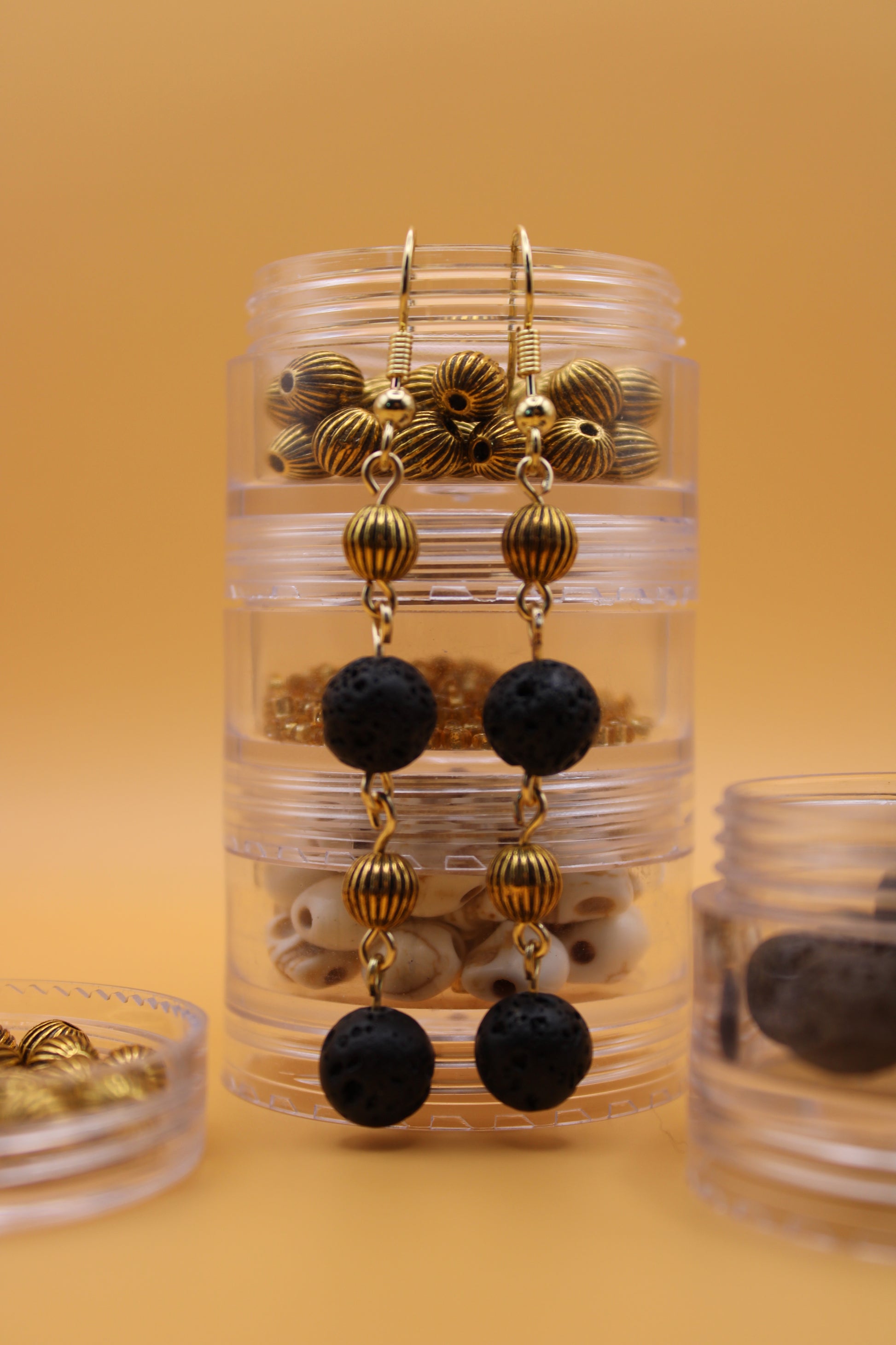 Molten Hex brings together the eerie charm of rugged lava rock and classy golden beads, creating spooky earrings perfect for Halloween. Hypoallergenic and gentle on the skin, it lets you embrace the season’s dark magic with comfort and style.